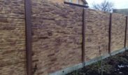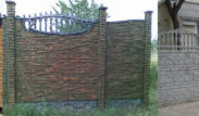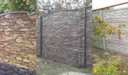 Стандартный цвет еврозабора серый. Забор могут покрасить во время изготовления. Иногда в форму для заливки забора вставляют: кирпич, камень, металл или дерево.